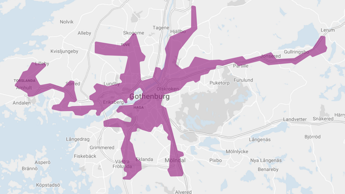 Detta är en ungefärlig bild av vårt gasnät. Kontakta oss gärna om du vill ansluta dig.