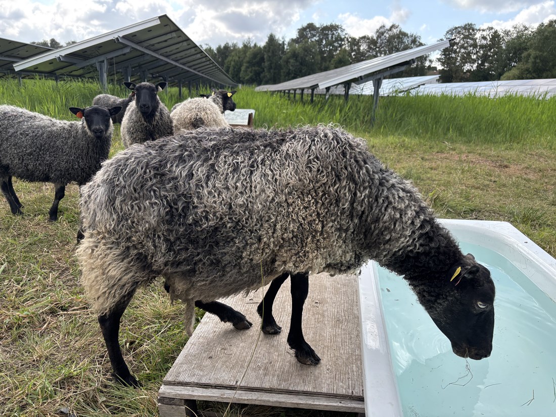 Ägaren, lantbrukaren Leif Gustavsson, och hans medarbetare har sett till fåren dagligen och försett dem med vatten. Skugga får de naturligt under solpanelerna.
