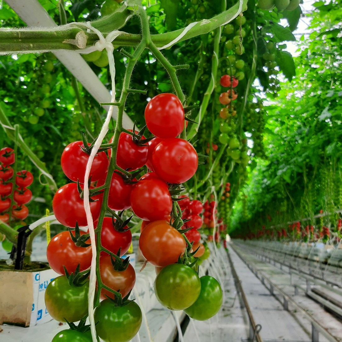Växthusodling: tomater (ett 20-tal sorter), gurka, spetspaprika och specialsorter