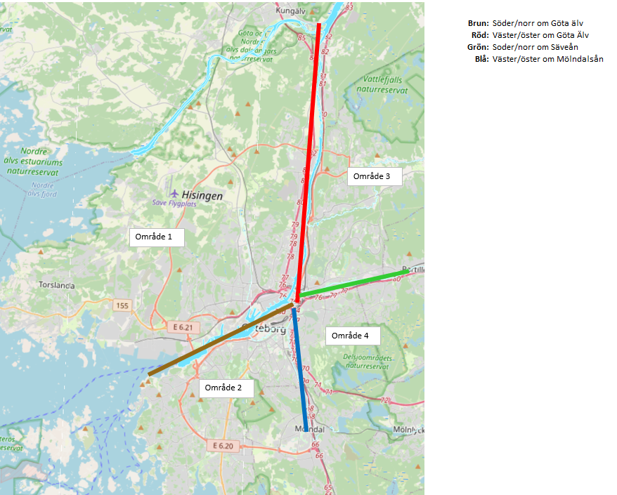 Kartbild med den ungefärliga områdesindelning som vår leverantör följer.